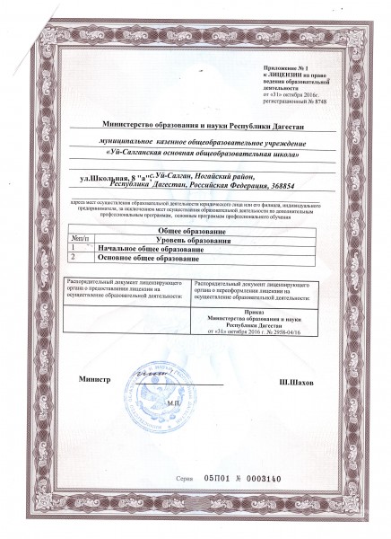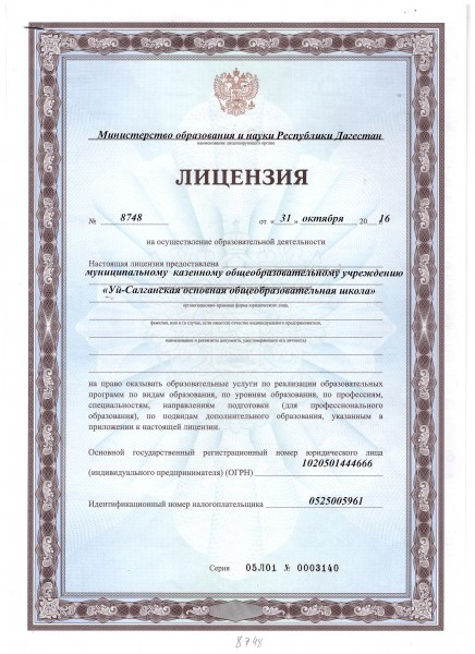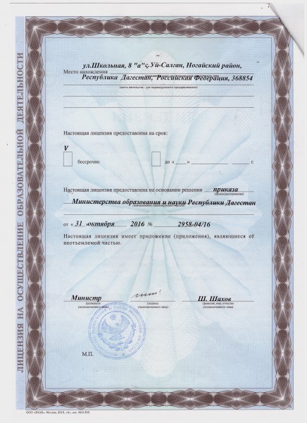 | Адрес местонахождения образовательной организации* | 368854 Республика Дагестан, Ногайский район с.Уй-Салган ул.Школьная 8а |